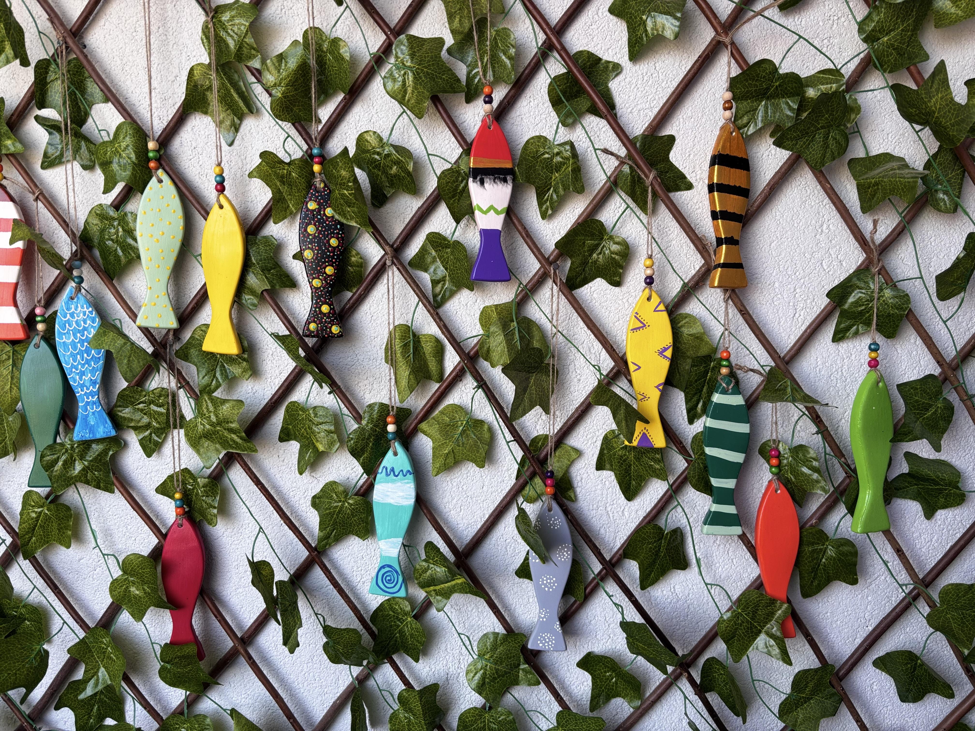 Materyal: Beton alaşımlı taş tozundan yapılarak akrilik boya ile boyanıp taş vernik uygulanmıştır. Ahşap boncuklar ile süslenmiştir.