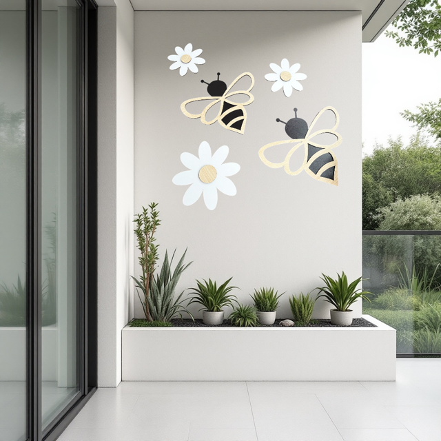 Balkon veya Çocuk odasının atmosferini canlandıran sevimli arı figürleriyle süslenmiş , duvarlara neşe katan 2’li ahşap kapı ve duvar süsü. Arkasındaki çift taraflı bant sayesinde kolayca asılabilir ve balkon/çocuk odasına şık bir dokunuş ekler. Doğal ahşap malzemesi sayesinde dayanıklılık ve uzun ömür sunar.Aynı zamanda çevre dostu bir dekorasyon seçeneği olarak öne çıkar.