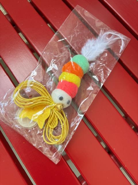 Kedilerin dikkatini çekmek ve oyunu daha eğlenceli hale getirmek için çanlarla donatılmıştır.