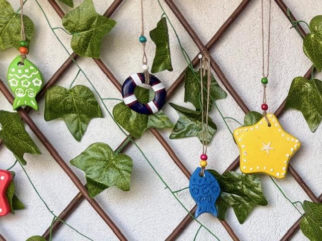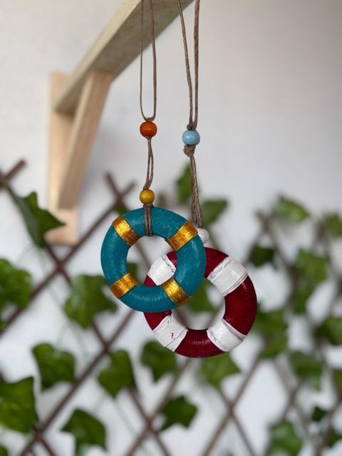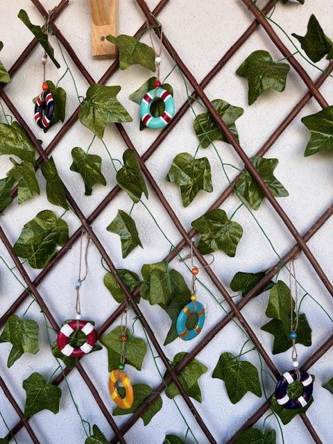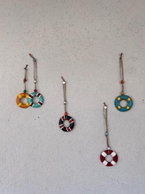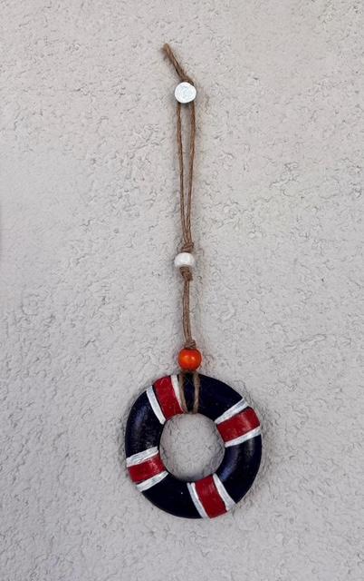 Materyal: Beton alaşımlı taş tozundan yapılarak akrilik boya ile boyanıp taş vernik uygulanmıştır. Ahşap boncuklar ile süslenmiştir. Dış kullanıma dayanıklıdır.