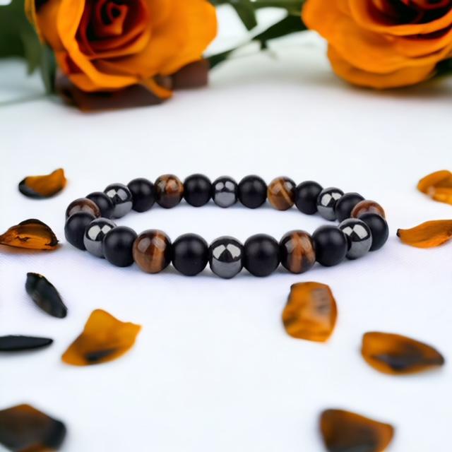 * Enerji/Sağlık bilekliği, Kaplan Gözü, parlak Oniks ve Hematit doğal taşlarından oluşur. Doğal taşın yapısı itibariyle renk, şekil ve ebatlarda çok ufak değişiklik olabilir. Taş ebatı 7-8 mm dir. 3 farklı doğal taştan oluştuğu için milimetrik farklılıklar olabilir.