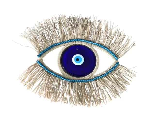 Nazar boncuğu 20cm ebatında olup mavi renk camdır.