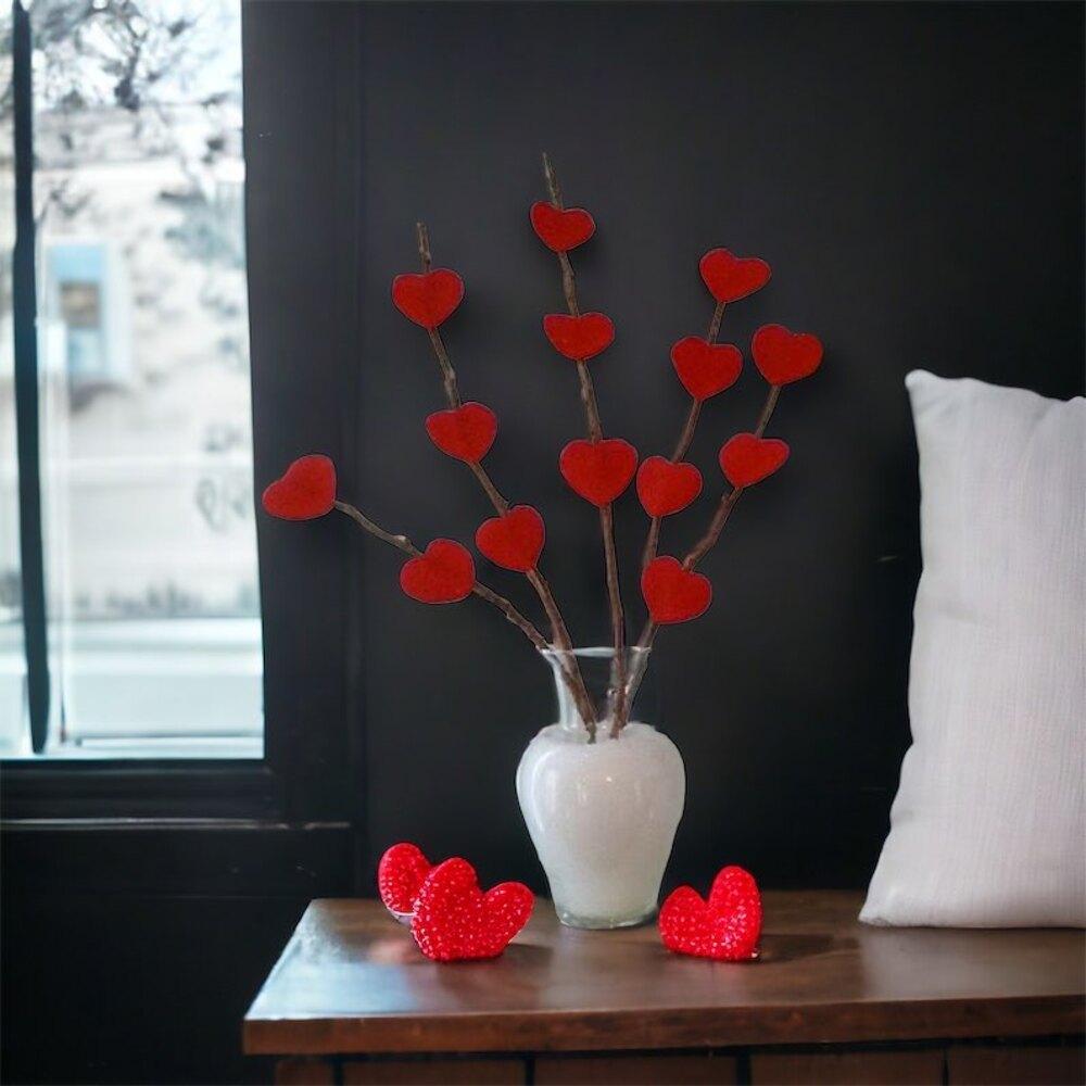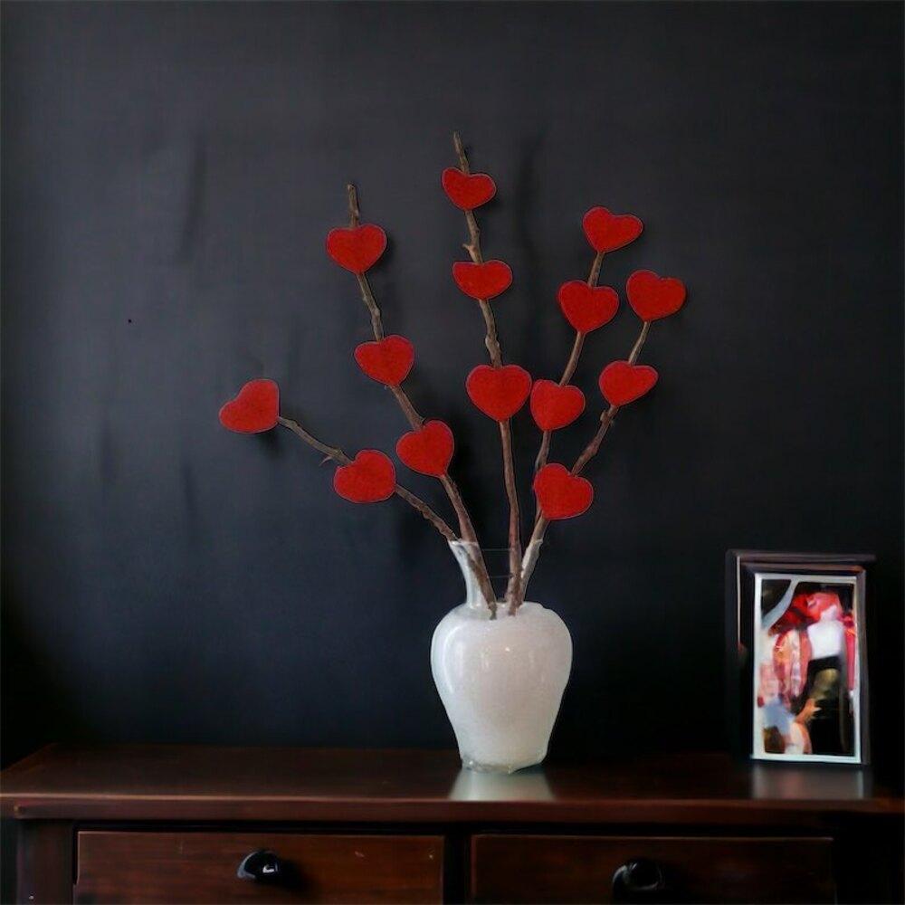 15 adet Kalp: keçedir (boyutu 3.5 cm)5 adet Dal Vazo fiyata dahil değildir görsel amaçlı kullanılmıştır.