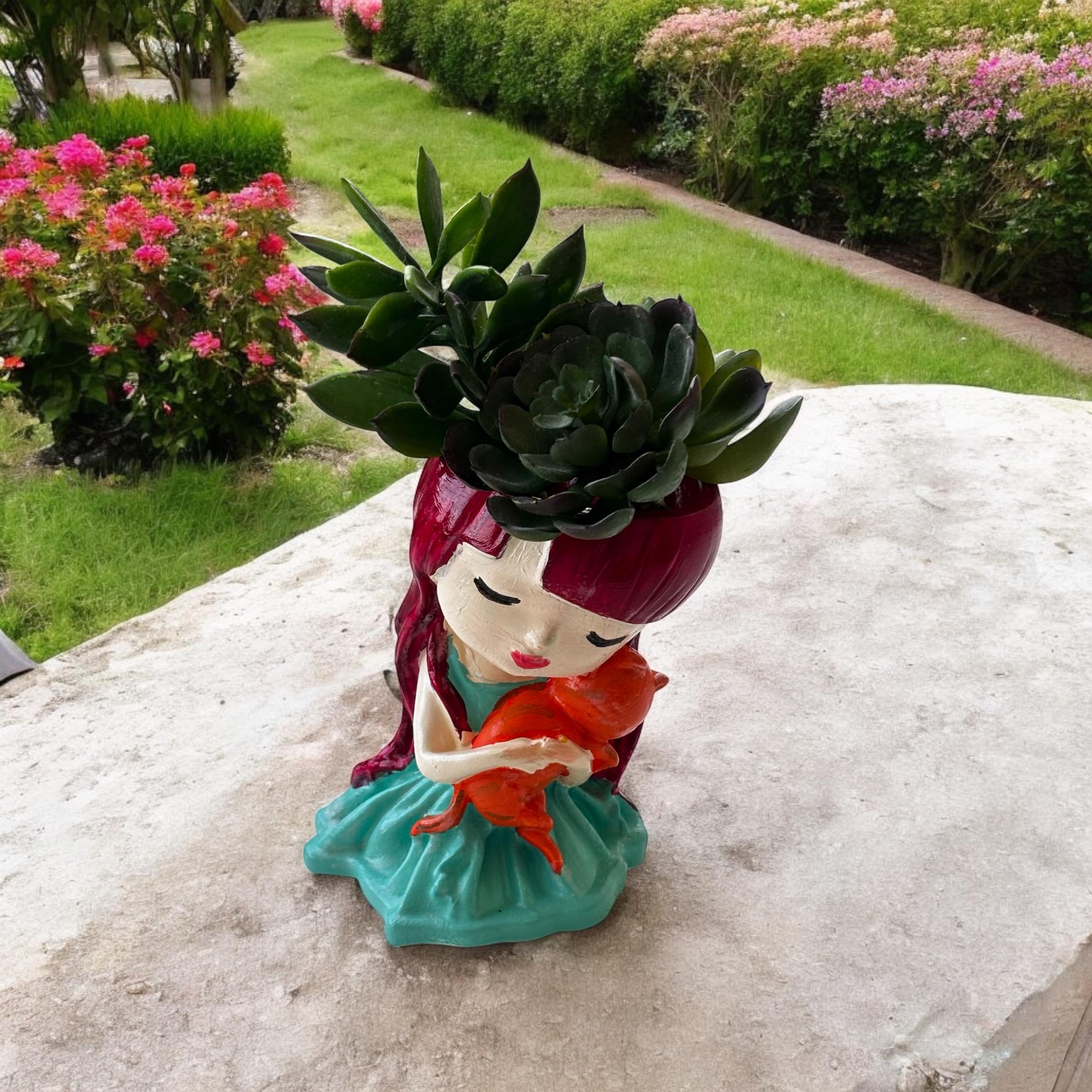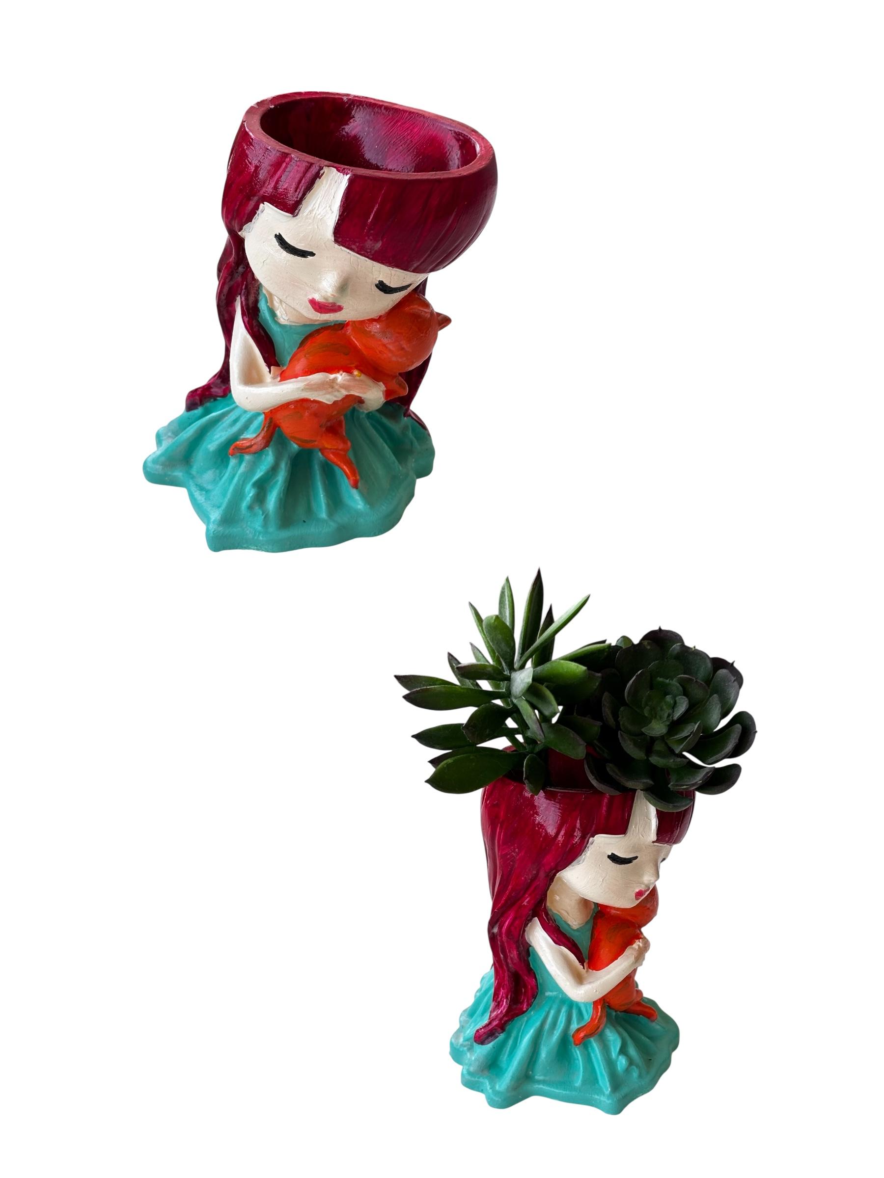 Gönderi içeriği: 1 adet Kedili Kız Sukulent Saksı