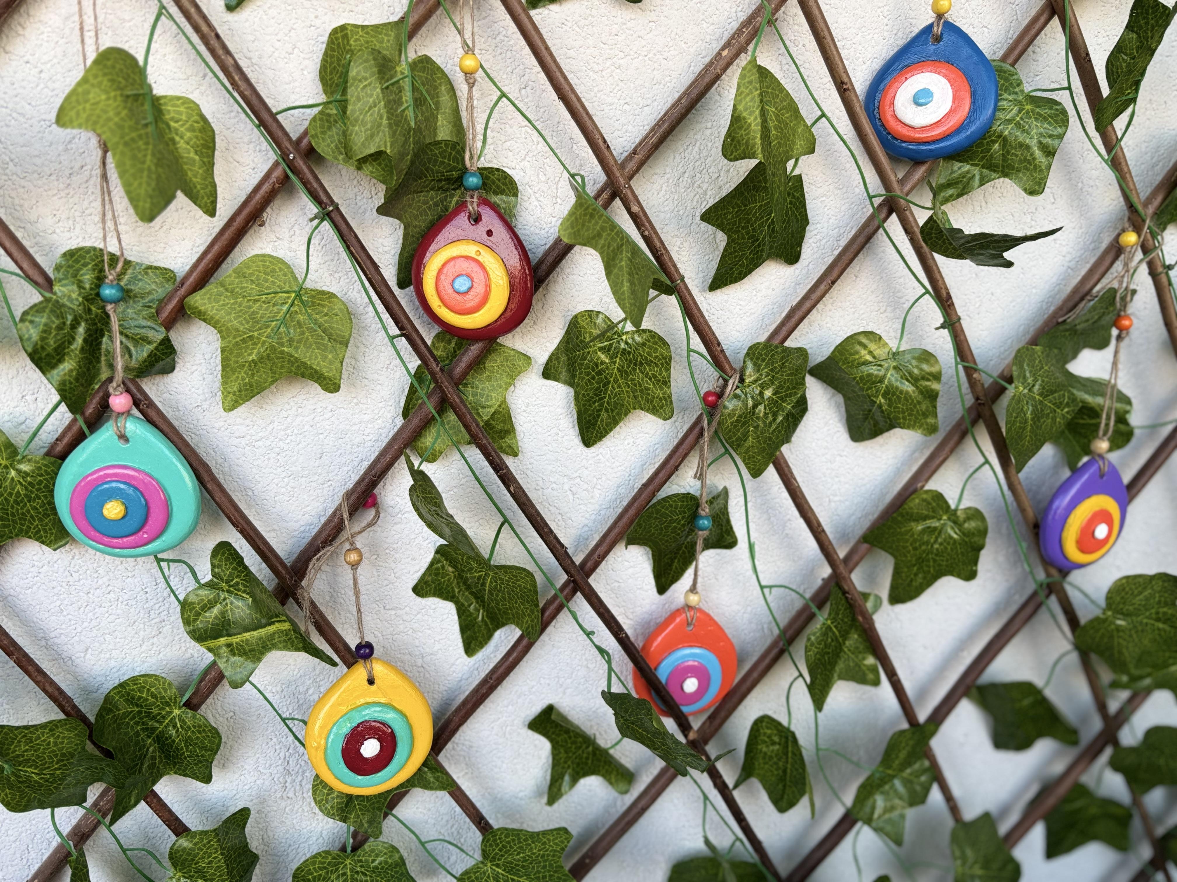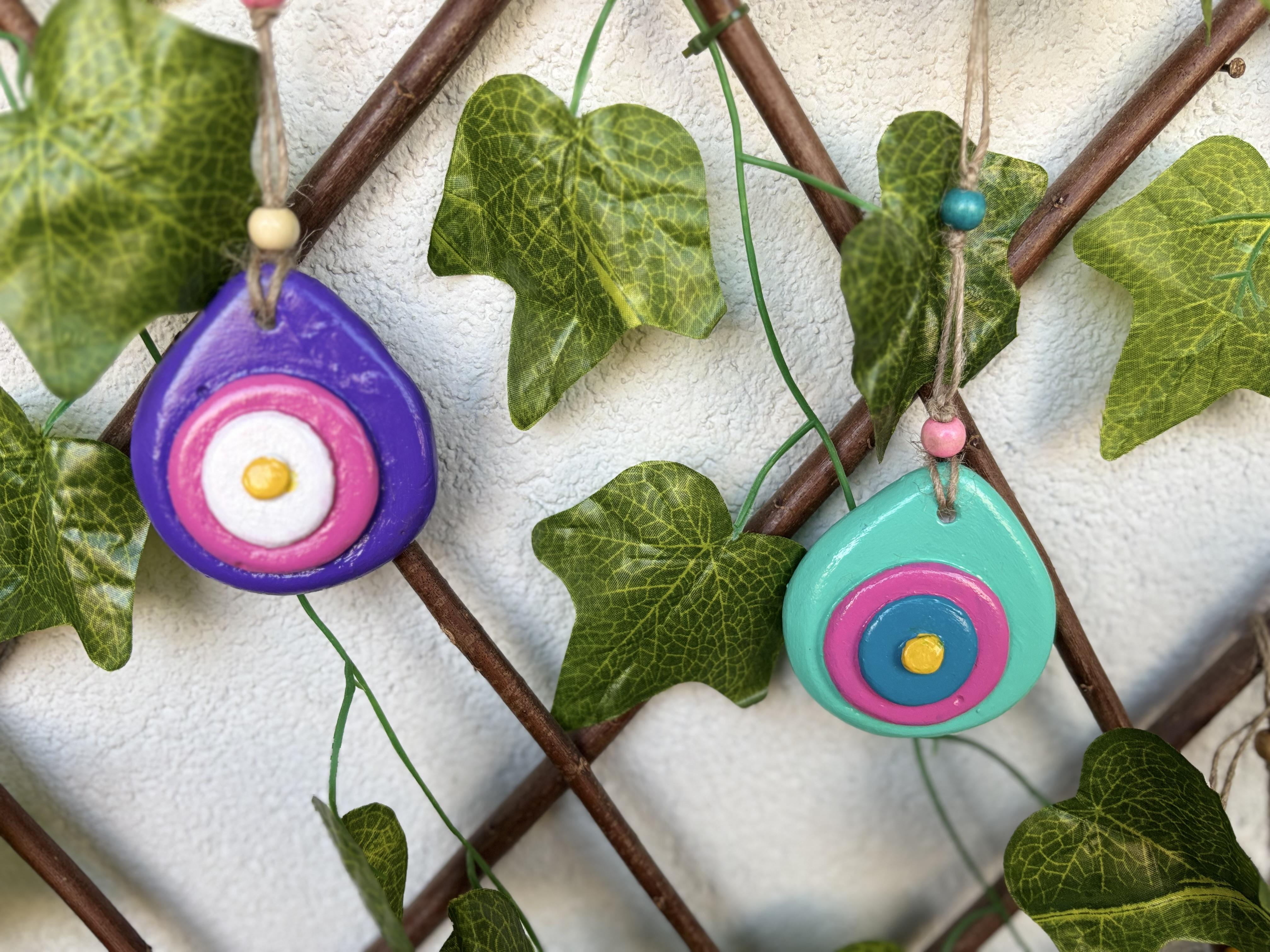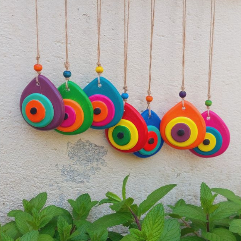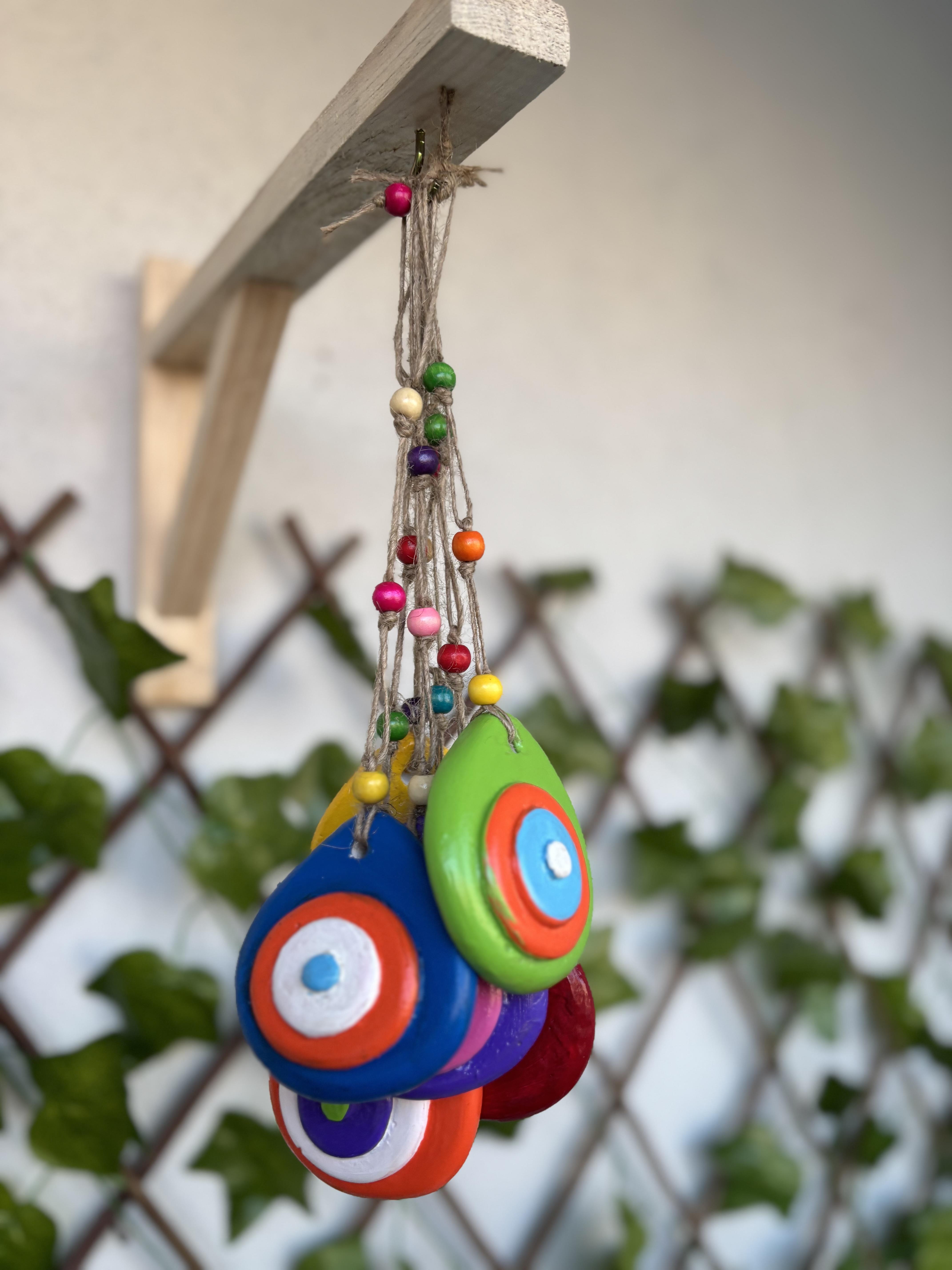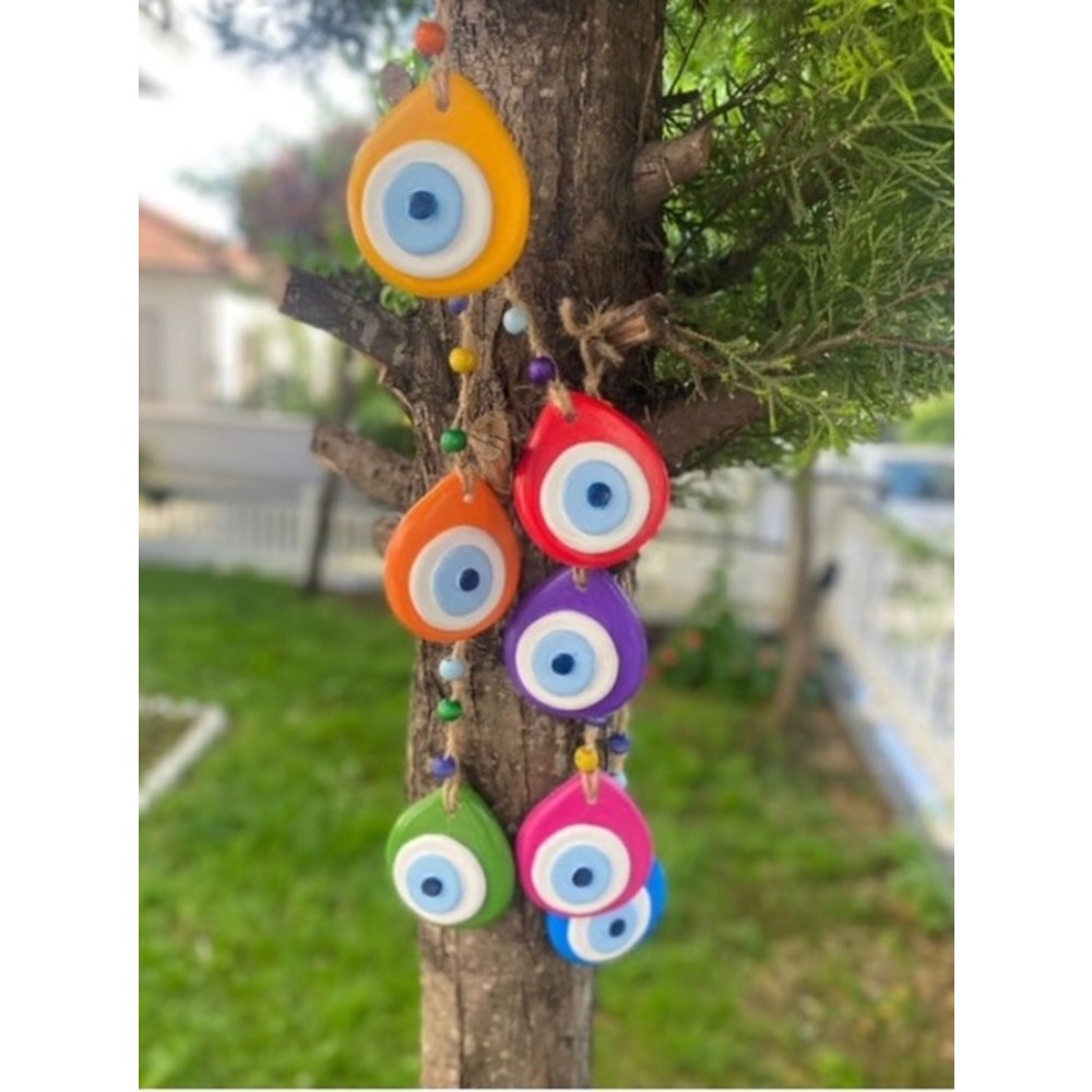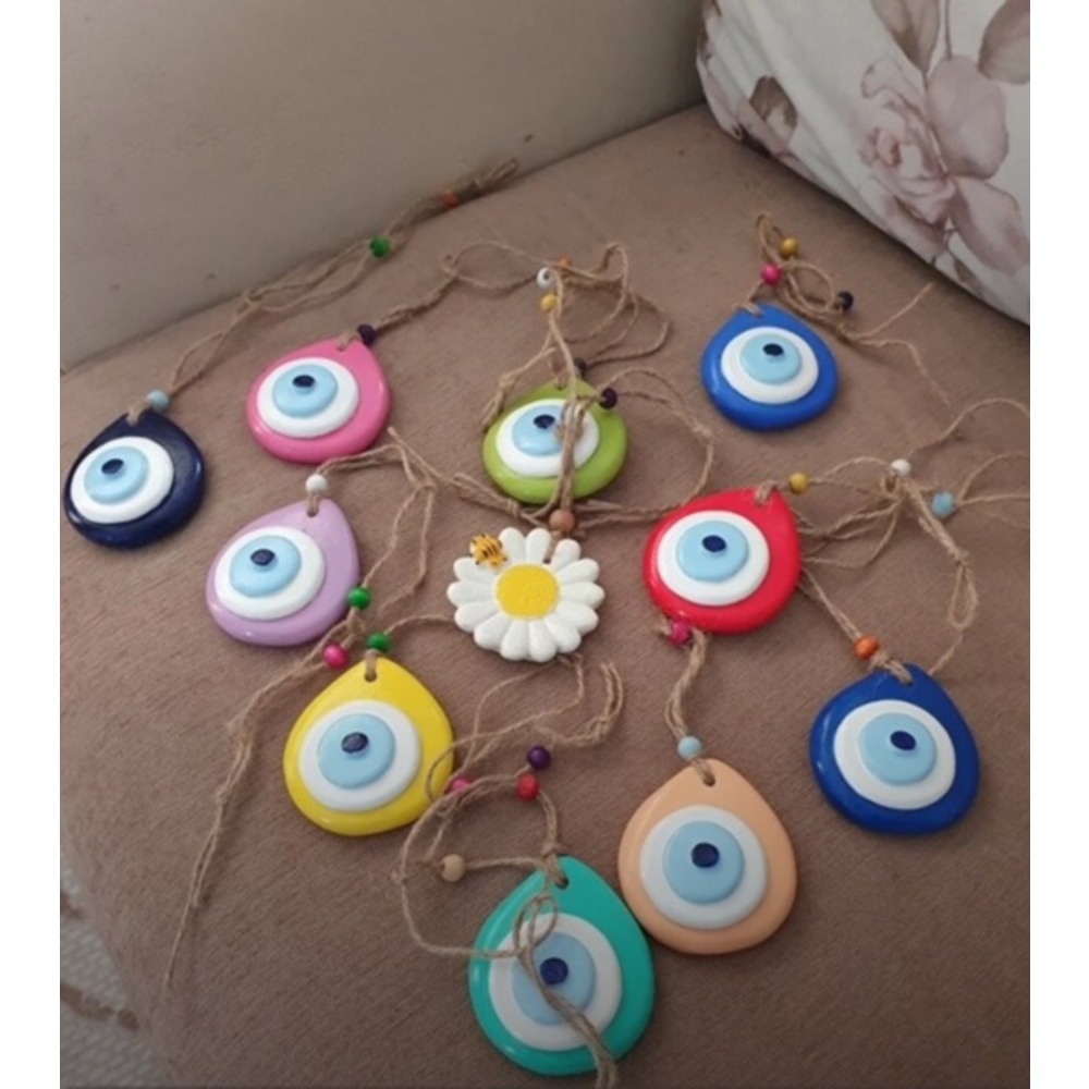 Nazar boncuk 8 x7x3 cm dir. İpiyle birlikte toplam uzunluğu 23cm dir.