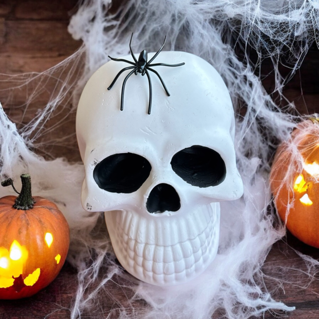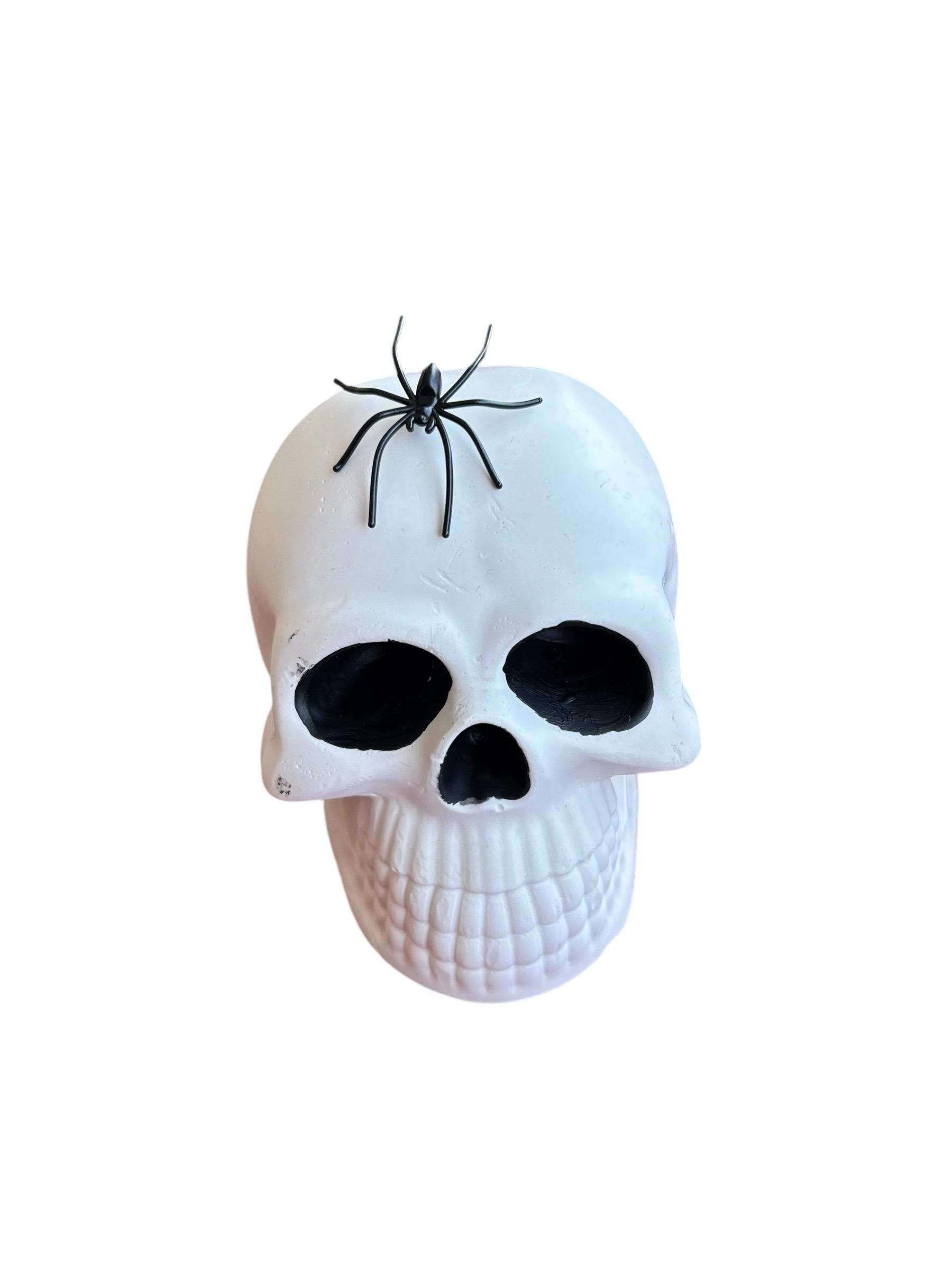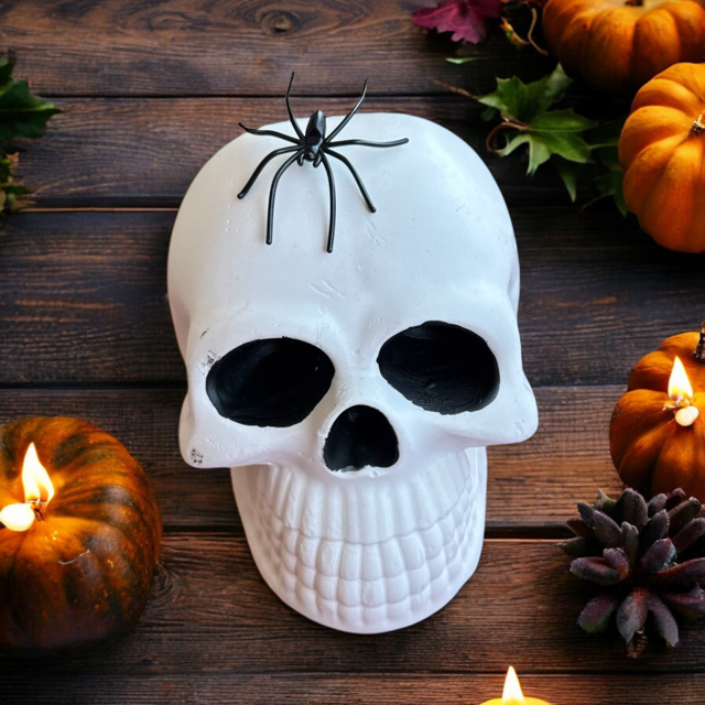 Cadılar Bayramı dekorunuza ürpertici bir dokunuş katın! Bu örümcekli kafatası, evinizi gizemli bir atmosfere büründürecek. Masanıza, raflarınıza ya da parti süslemelerinize karanlık bir enerji ekleyin.”