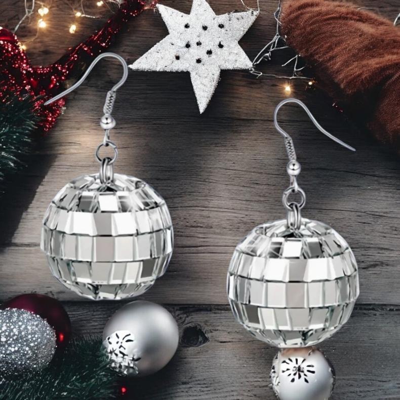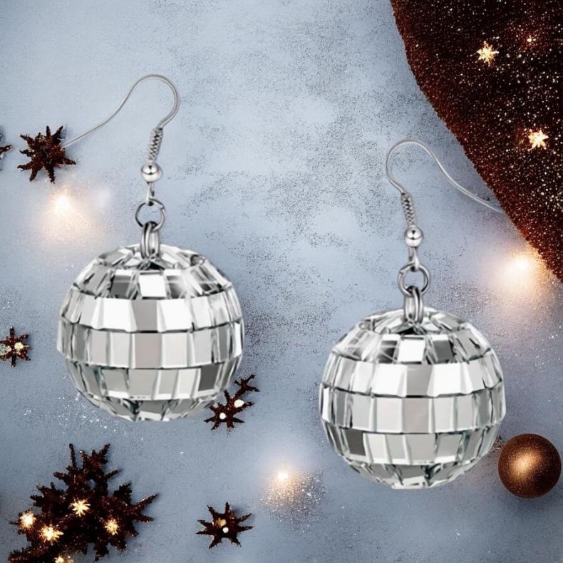 Materyal: küpe aparatı metal, disko topu ayna kaplı strafor